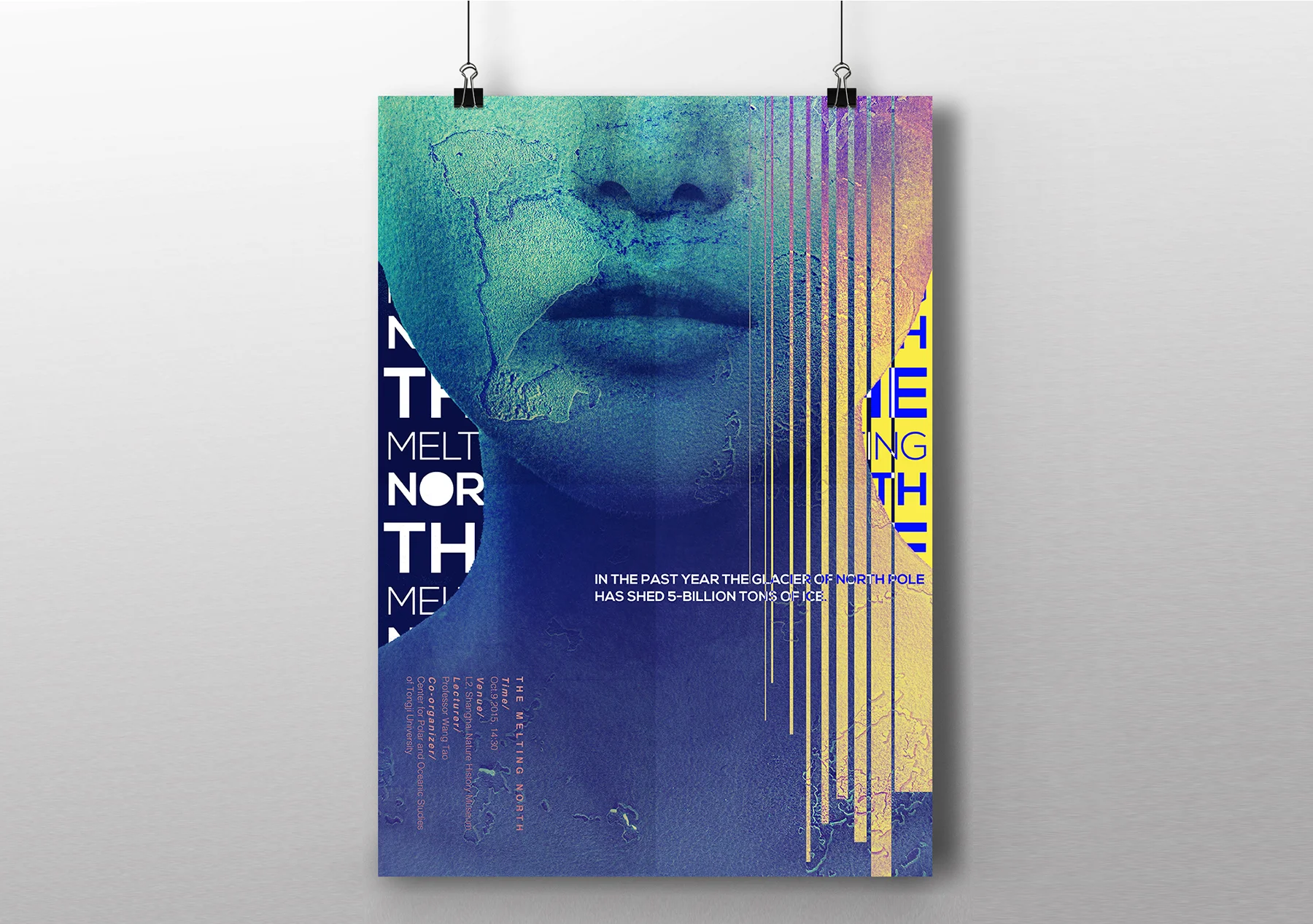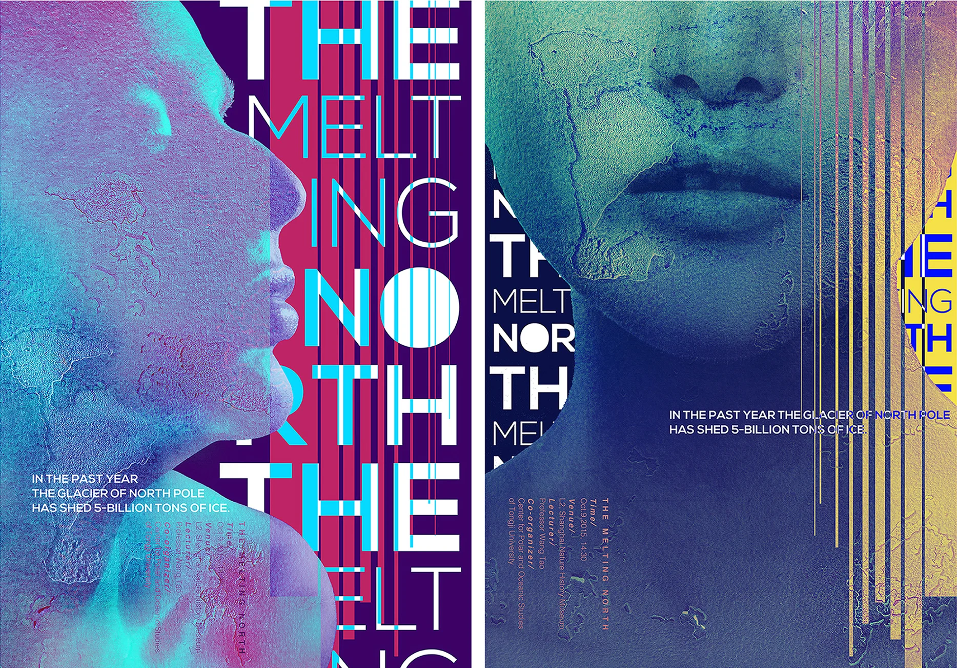 The Melting North is a poster designed for a lecture discussing north pole’s melting glacier.